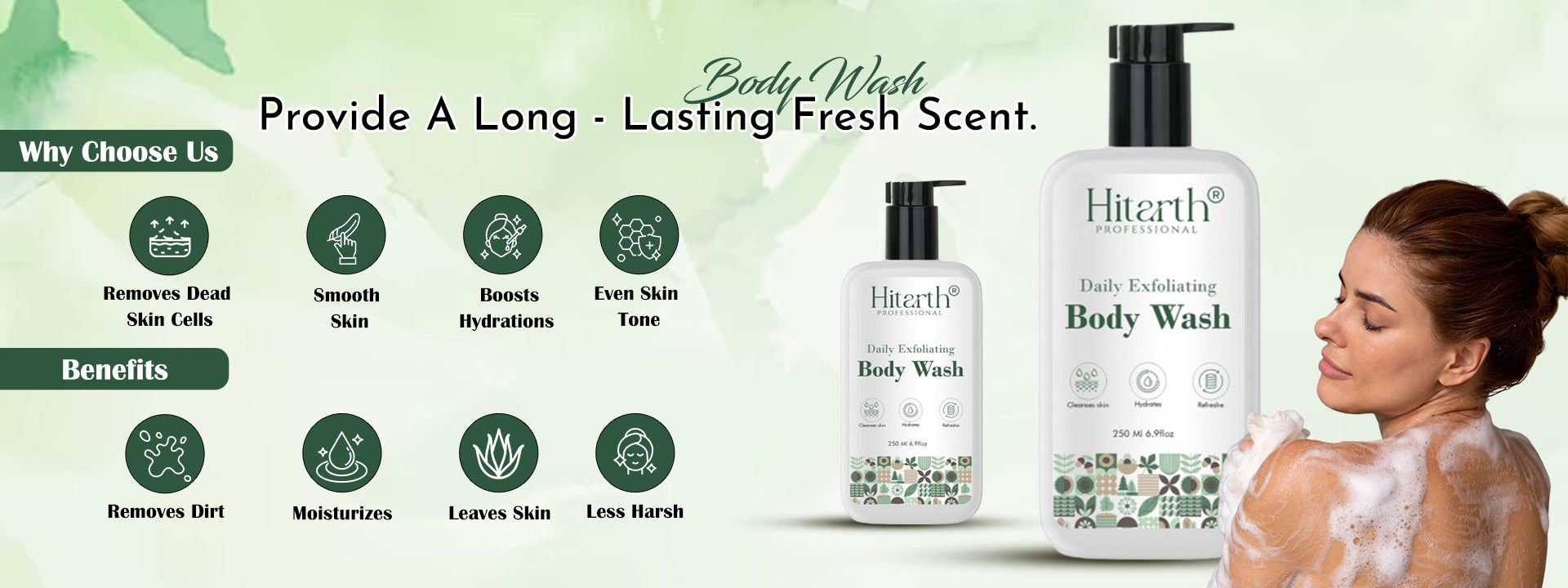 Hitarth Professional Exfoliating Body Wash | Contains (Salicylic Acid, Vitamin E & Lactic Acid) | Gentle Exfoliating Shower Gel | Removes Tan | Prevents Dry, Rough, Bumpy Skin | For women & Men | 250ML
